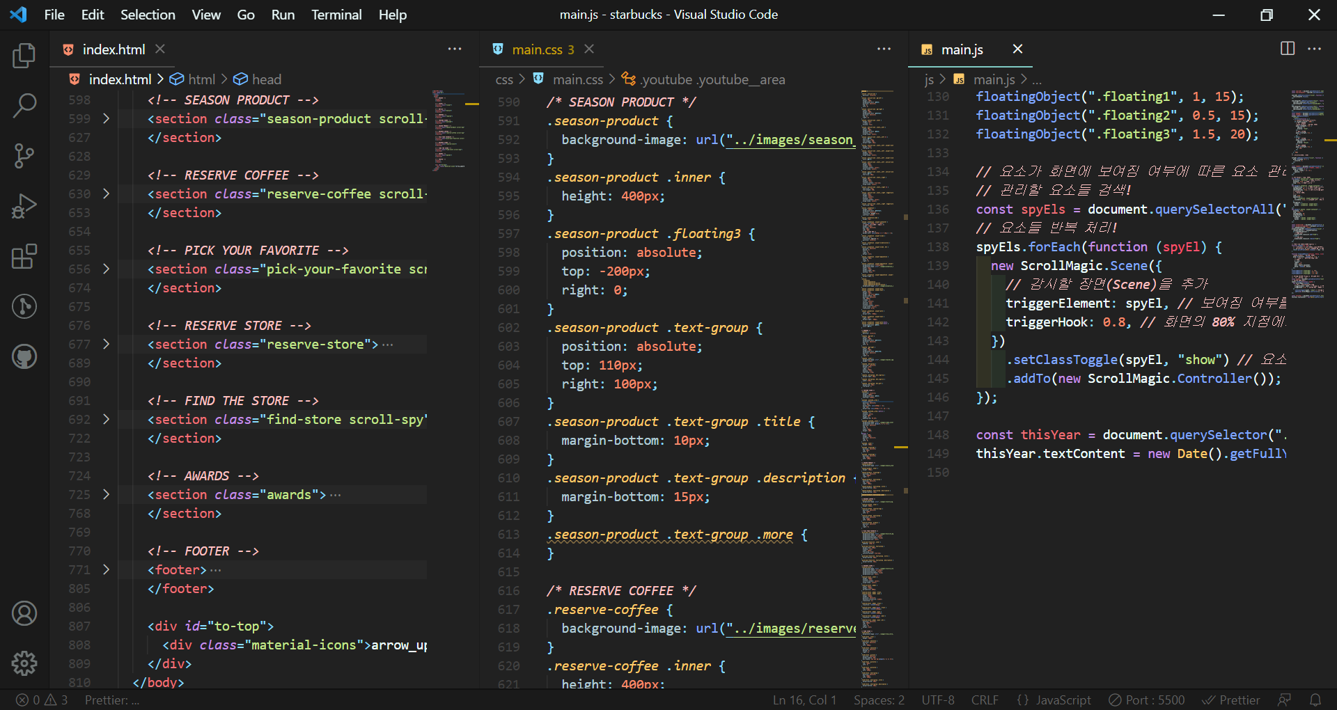 .addTo(new ScrollMagic.Controller()); // ์ปจํธ๋กค๋ฌ์ ์ฅ๋ฉด์ ํ ๋น(ํ์!)