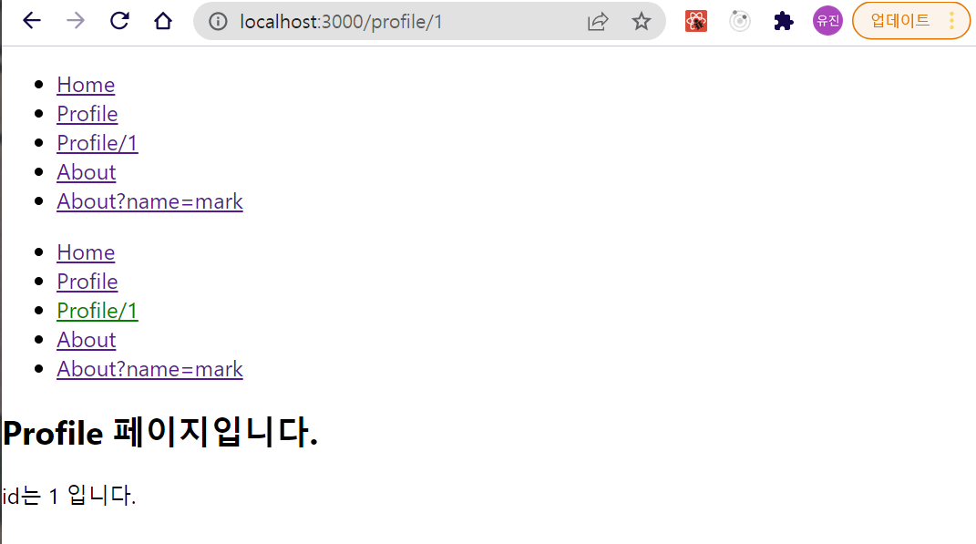 <Link to="/profile/1">Profile/1</Link>