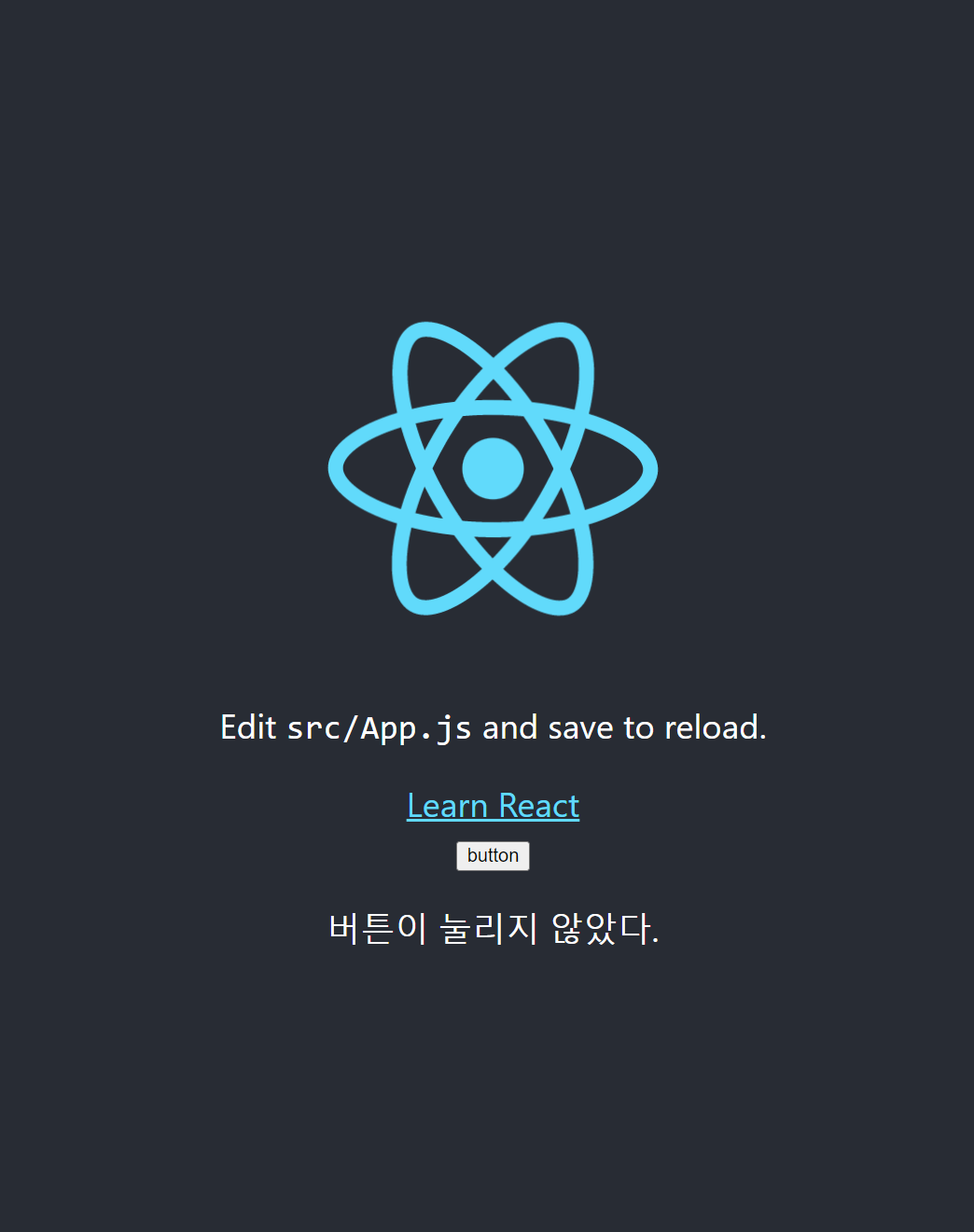 it('๋ฒํผ์ ํด๋ฆญํ๊ธฐ ์ ์๋, p ํ๊ทธ ์์ "๋ฒํผ์ด ๋๋ฆฌ์ง ์์๋ค." ๋ผ๊ณ ์ฐ์ฌ์ง๋ค.', () => {