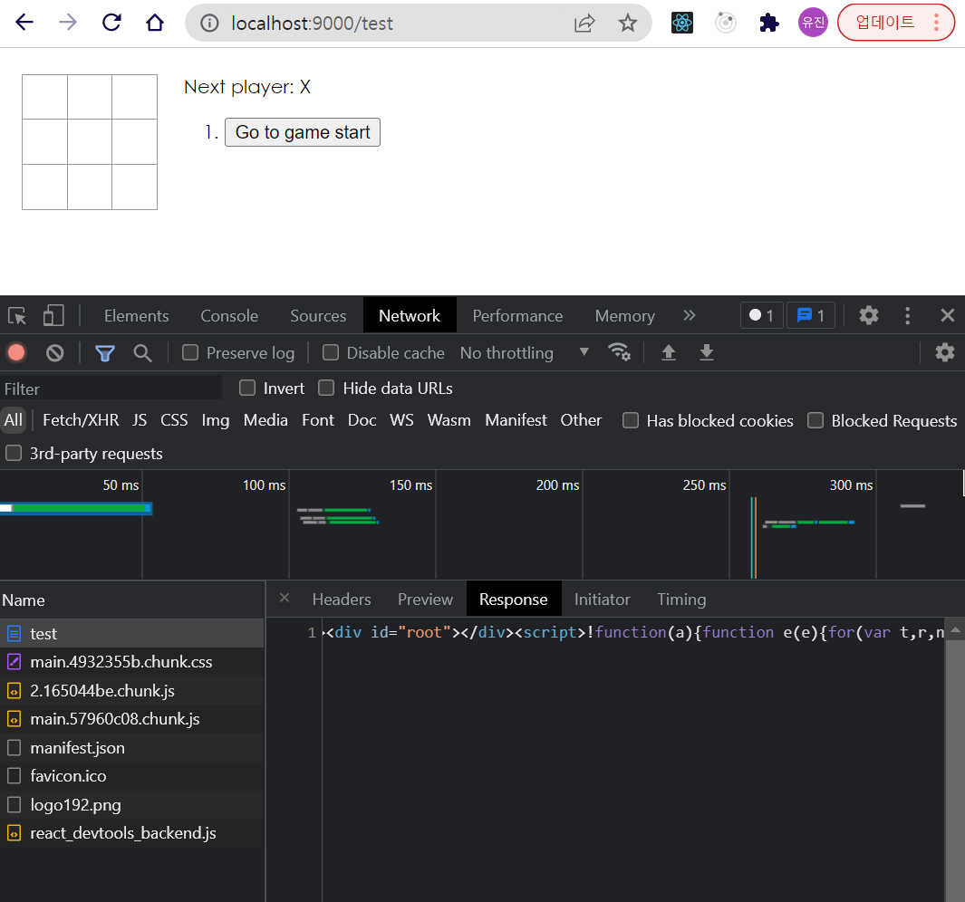 - μλ²μμ μλ΅μ κ°μ Έμ¬ λ, κΈ°μ‘΄μ²λΌ static file λ§μ κ°μ Έμ€λ κ²μ΄ μλκ³ , λ¨Όμ μλ²μμ μλ΅ κ°μ λ§λ€μ΄μ λ΄λ €μ£Όκ³ , κ·Έ νμ static νμΌμ λ΄λ €μ€λ€.