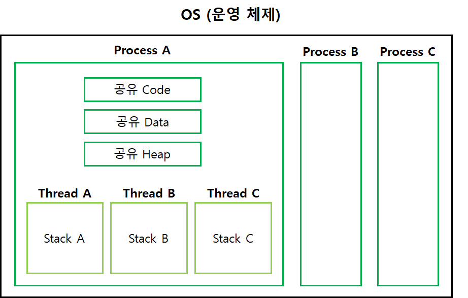 νλ‘μΈμ€λ μ΄μ체μ κ΄μ μμμ μ€ν νλ¦μ ꡬμ±νκ³ , μ€λ λλ νλ‘μΈμ€ λ΄μμμ μ€ν νλ¦μ ꡬμ±νλ€.