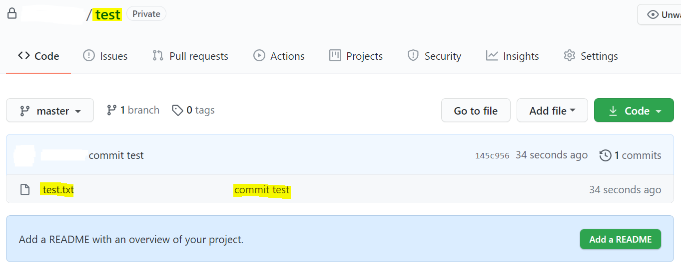 โก Github์์ ์์ฑํ git repository์ ์ฐ๊ฒฐํ ํด๋๋ก ํ์ฌ ์์น ์ด๋ (์ ๋ ์ฐ๊ฒฐํ ํด๋๋ก, test ํด๋ ์์ text.txt ํ์ผ์ ์์ฑํ์์ต๋๋ค.)