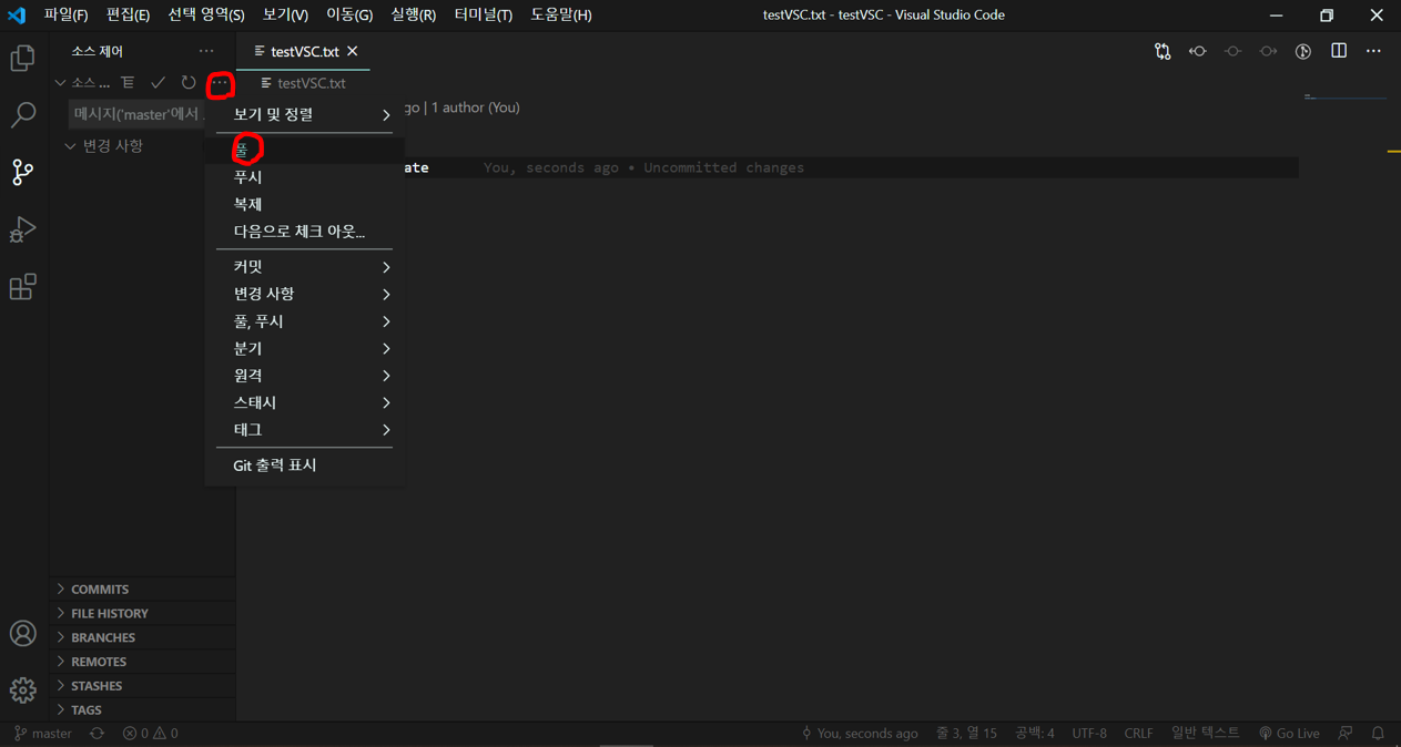 โ commit ๋ฉ์ธ์ง ์ ๋ ฅ (์์ ์ด commit ํ ๋ฉ์ธ์ง๋ฅผ ์ ๋ ฅํ๋ฉด ๋ฉ๋๋ค.) - 'โ' ํด๋ฆญ