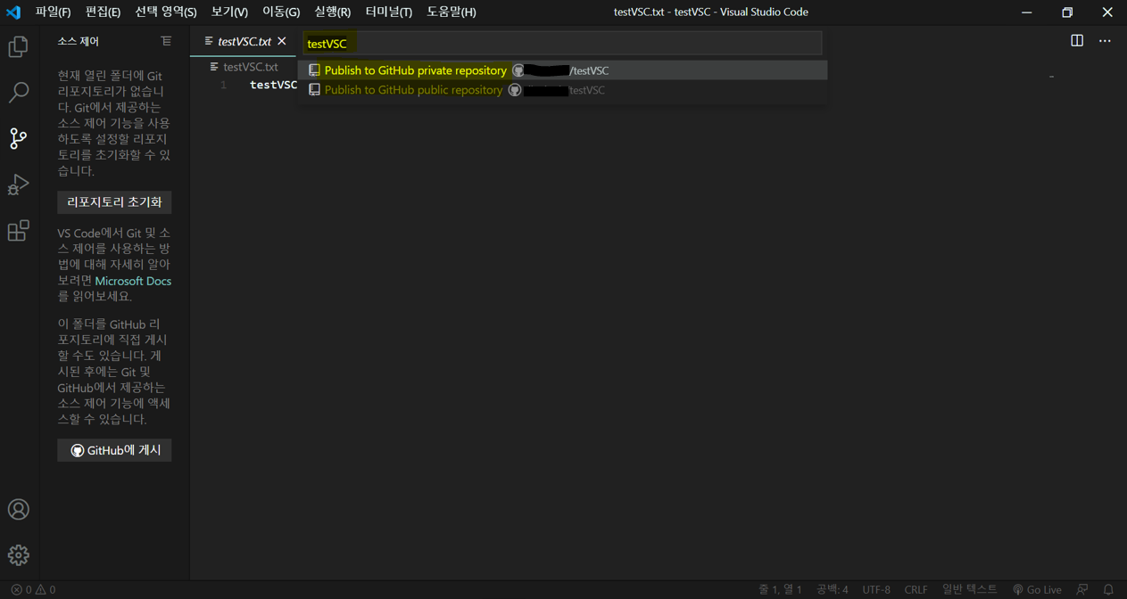 โก github์ ์ฐ๊ฒฐํ ํด๋ Visual Studio Code๋ก ์ด๊ธฐ