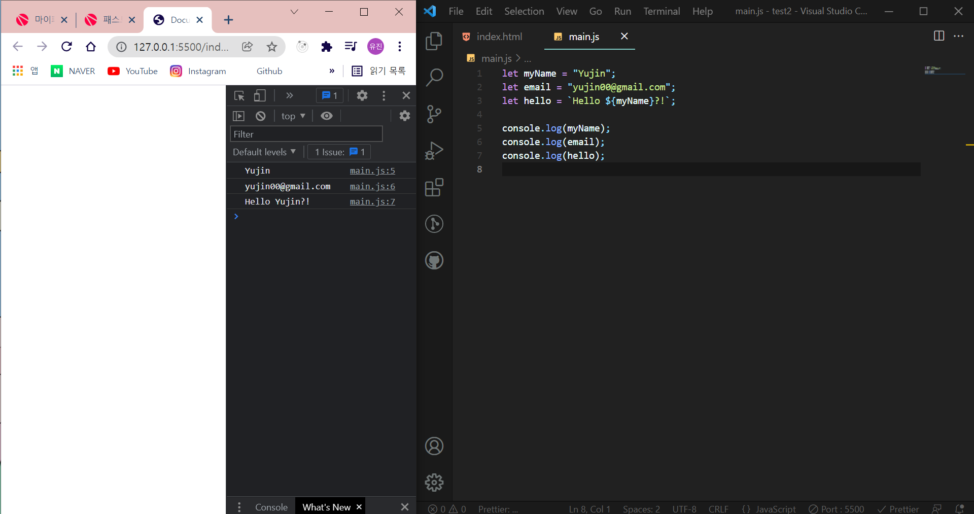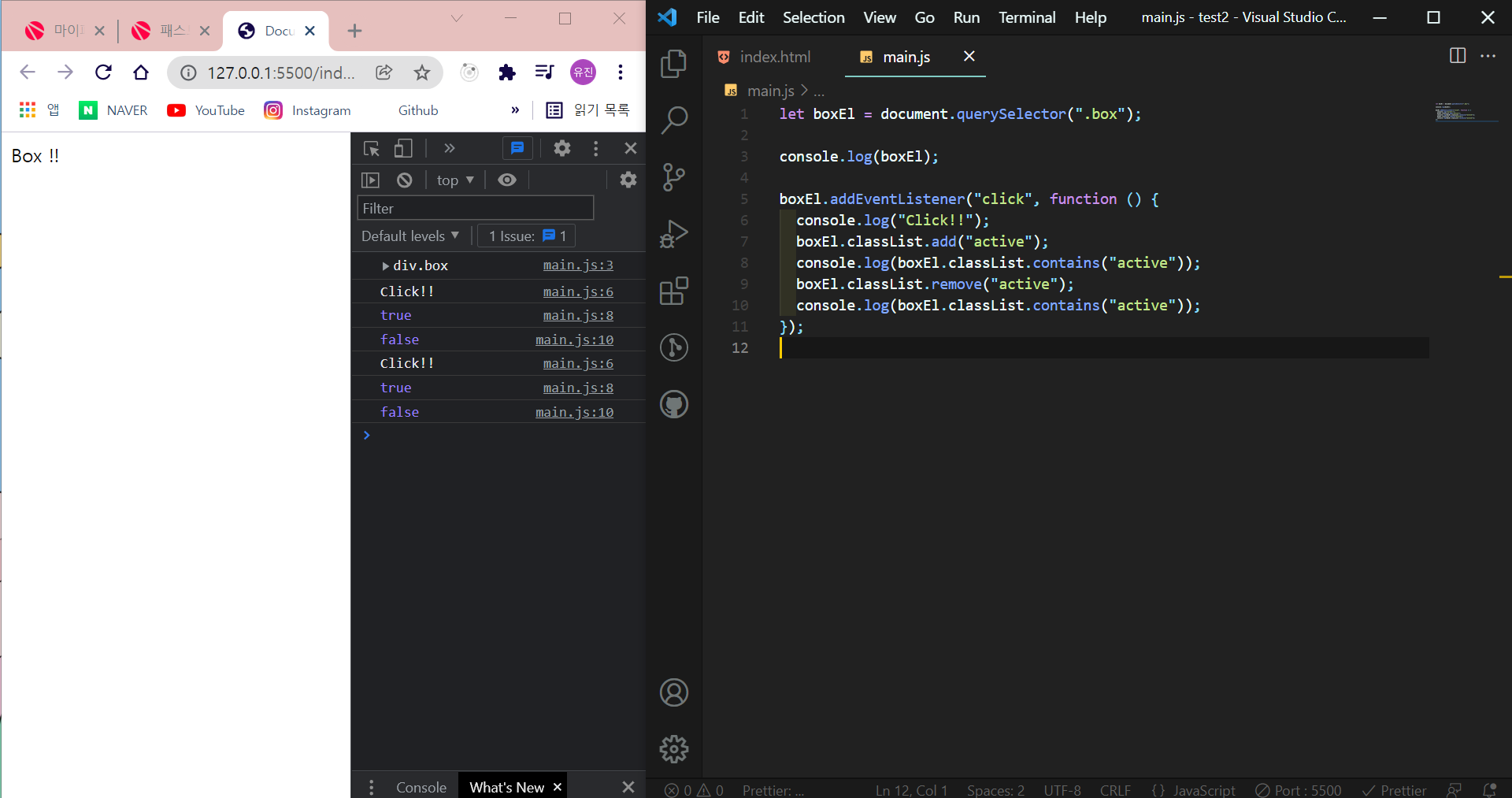 ์คํ๋ฒ ์ค ์์ ๋ฅผ ์ํด ๊ฐ๋จํ js๊ฐ ํ์ํด์ ์งํํ๋ ํํ ๋ฆฌ์ผ์ด์๋ค. ์ดํ์ js essential, level up ํํ ๋ฆฌ์ผ๋ ์๋ค. ์ ๋ง ๋น ๋ฅด๊ณ ๊ฐ๋จํ๊ฒ ๊ธฐ์ด js ๋ฌธ๋ฒ์ ๋ฑ๋ฑ ์๋ ค์ฃผ์๋ค.