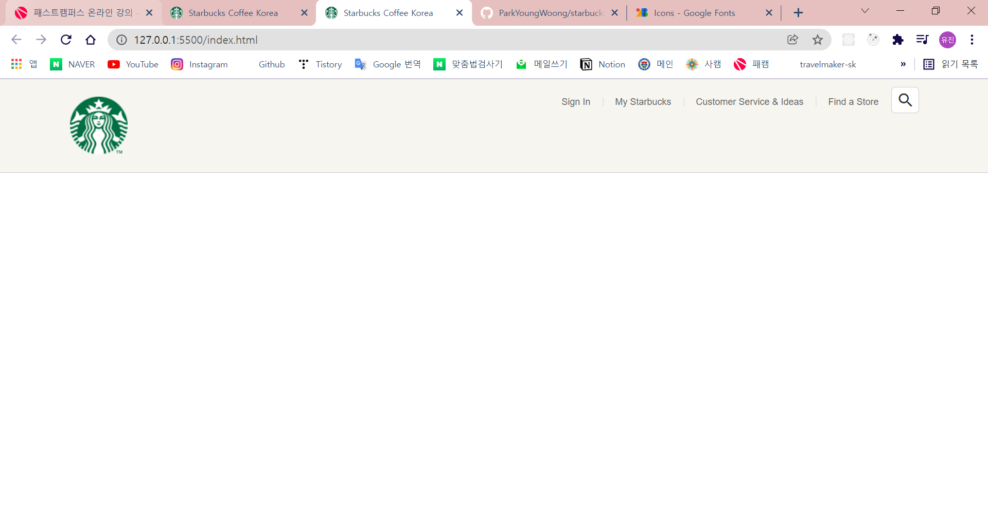 GitHub - ParkYoungWoong/starbucks-vanilla-app: ์คํ๋ฒ ์ค ๋๋ฉ ํ์ด์ง(+๋ก๊ทธ์ธ) ์์ for FastCampus